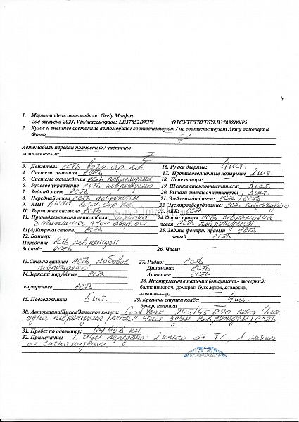 | Состояние ПТС | Отсутствует |