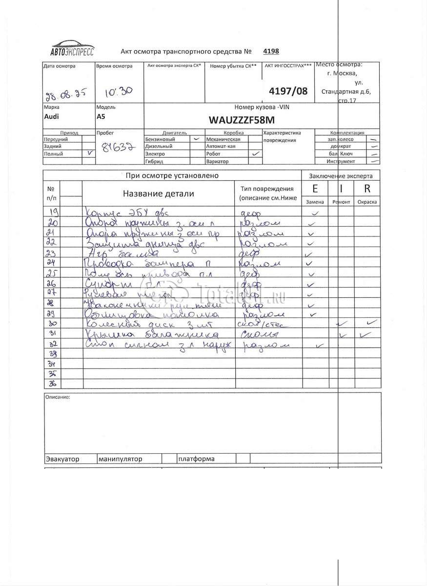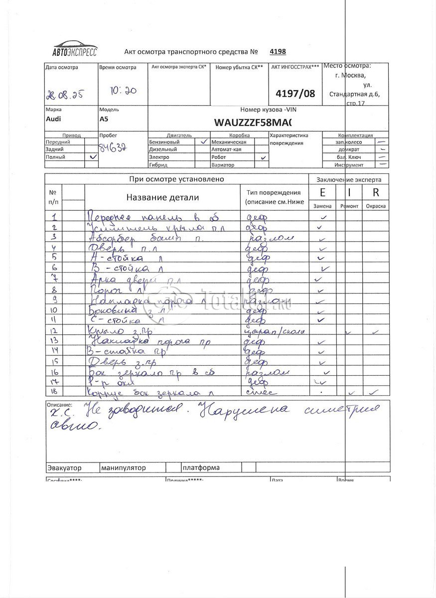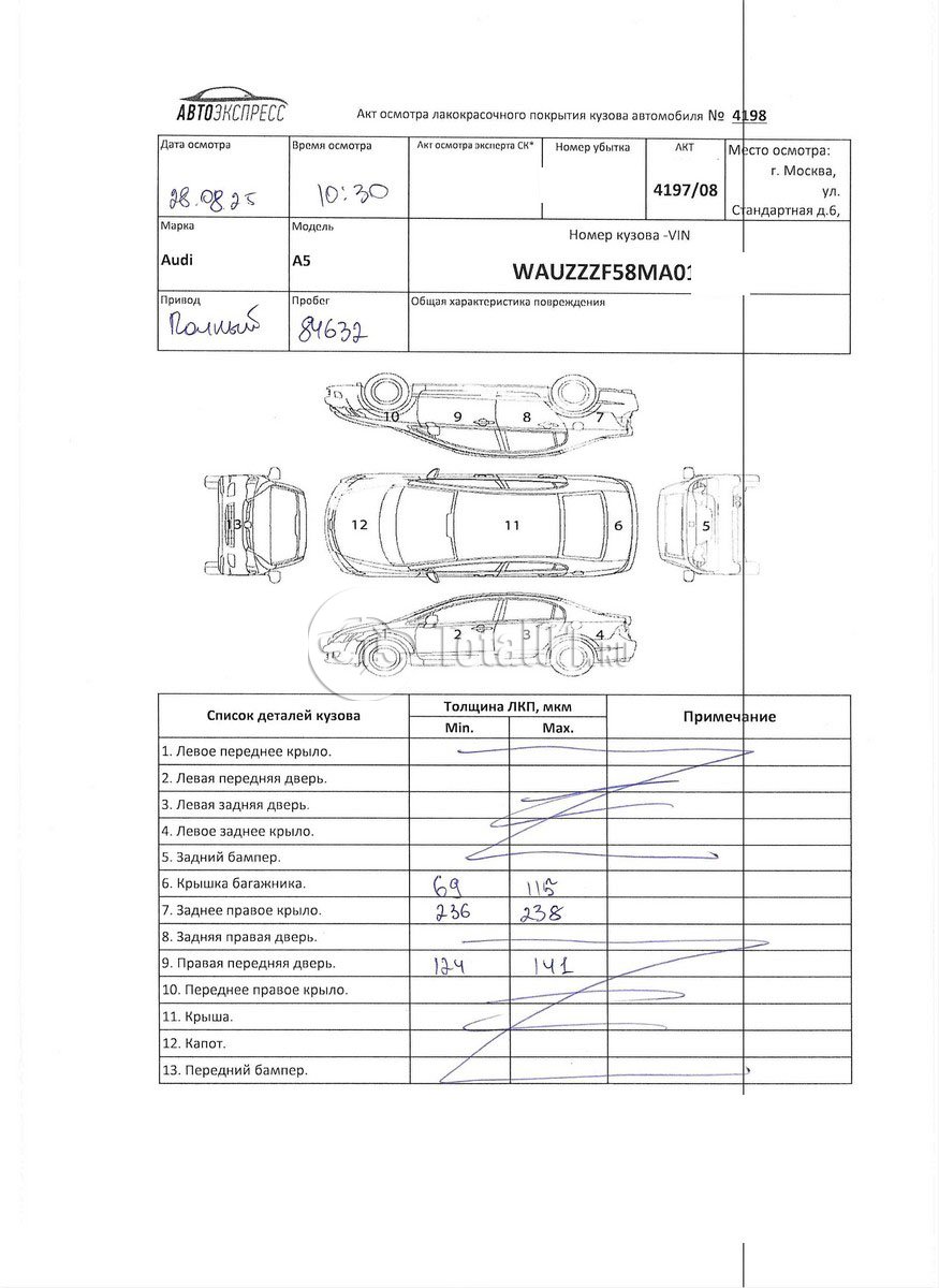Крыло п пр - заменить (снято | 50 55 55 50 | 5 |