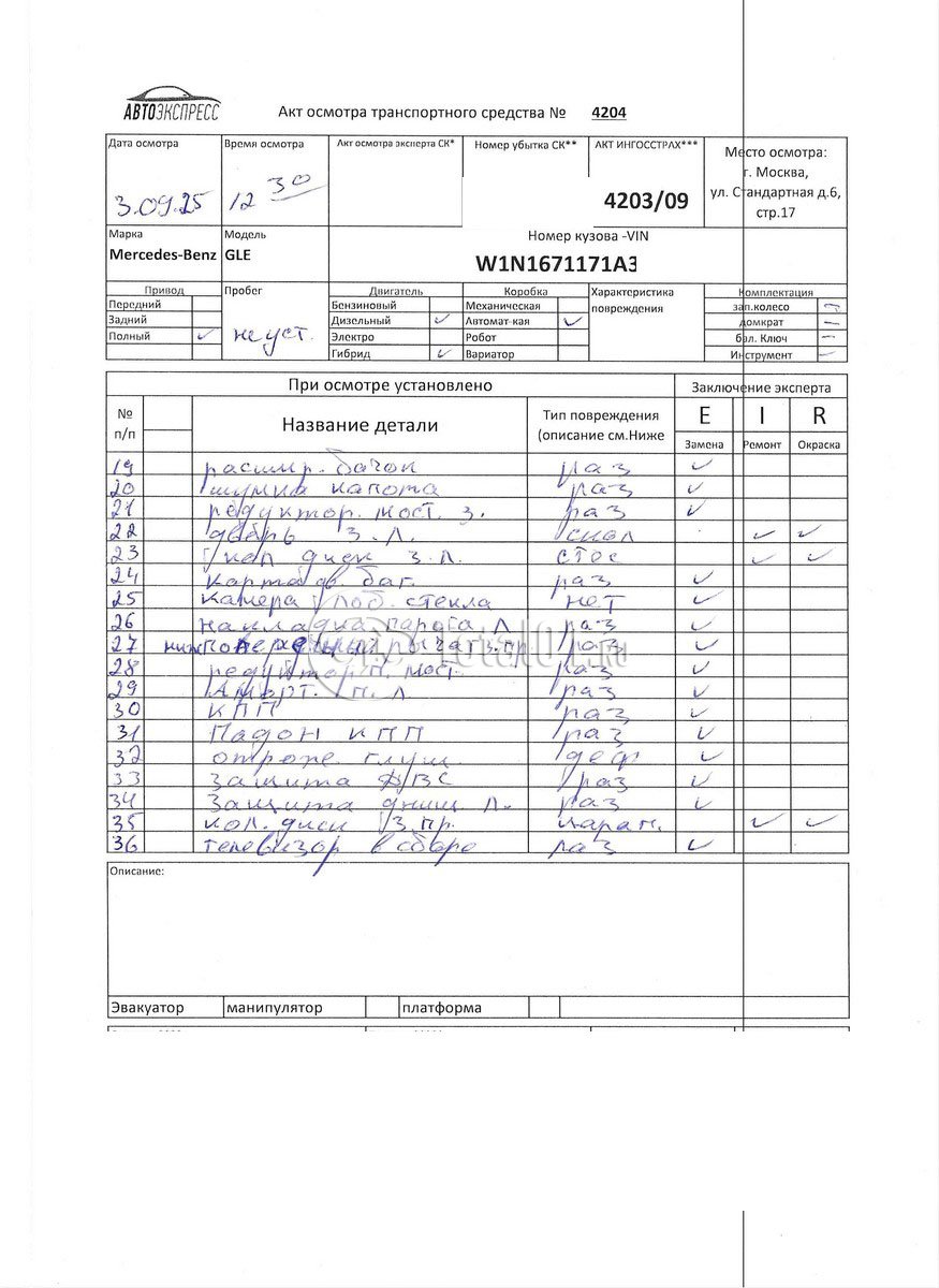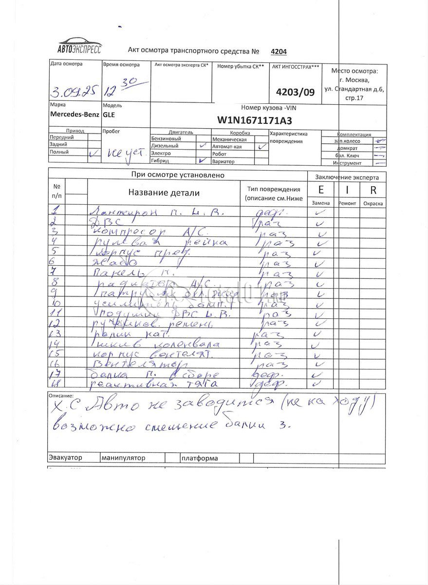 | Ремонт повреждений пер части выполнить | 88-2532 ZAX | 68 |