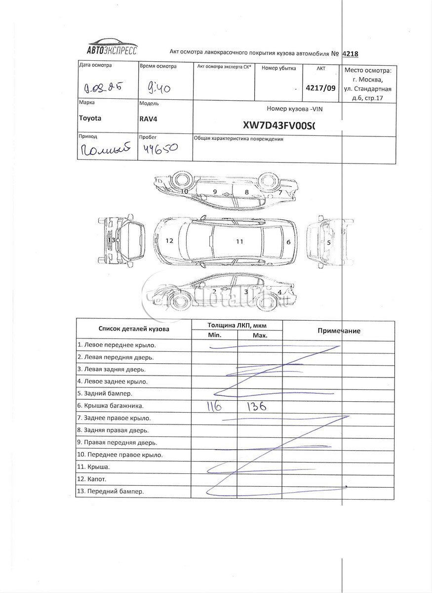Капот - заменить | B070 | 4 |