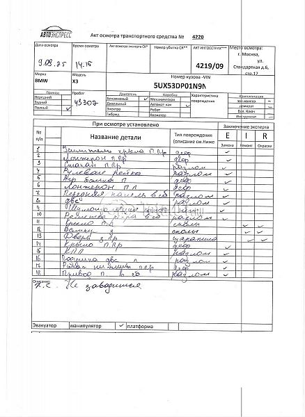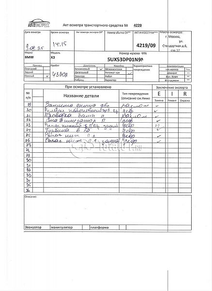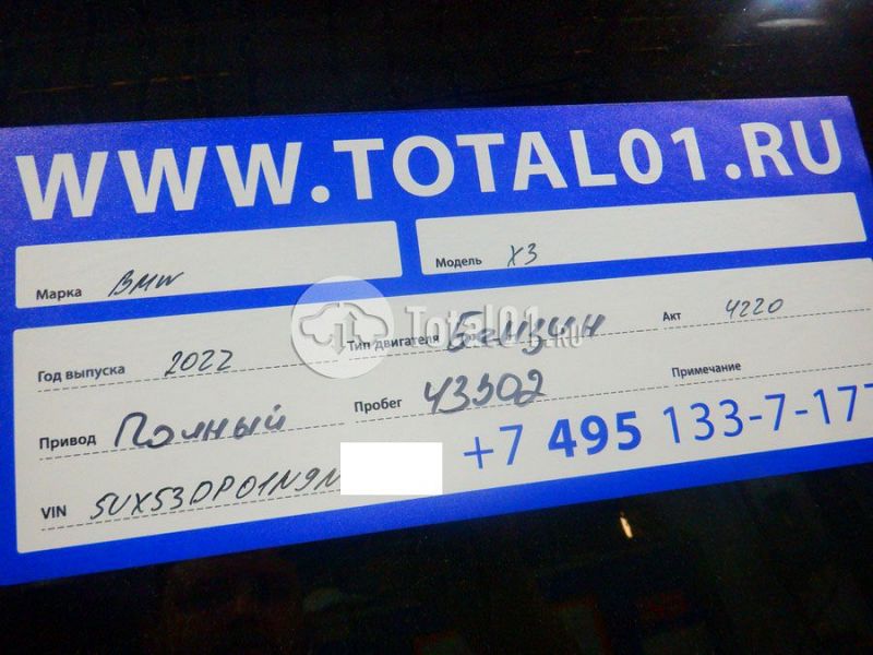 BMW X3 xDrive30i. ПТС: Не передан (выдана справка). Вин номер предоставляется по запросу,направленному на адрес man4@total01.ru. Стоянка: ул.Стандартная, д.6, стр.17. Счет выставляется автомагазином ООО «Блицкар». (Сумма НДС будет указана в счет фактуре). Авто после ДТП, возможны скрытые повреждения. Гарантии юридической чистоты. Запчасти с авто отдельно не продаются. Цены по телефону не обсуждаются. ДКП и ПТС(если не изъят в ГИБДД) находятся в Москве. Возможности отправки документов нет. Для получения ДКП и ПТС(если не изъят в ГИБДД) потребуется ваше личное присутствие или нотариальная доверенность на вашего представителя. Передний удар; возможны скрытые повреждения. Ранее автомобиль находился в собственности физ.лица. Количество владельцев: н/у.