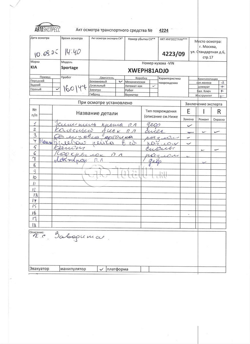 Лонжерон п л.отремонтировать | | 100 |