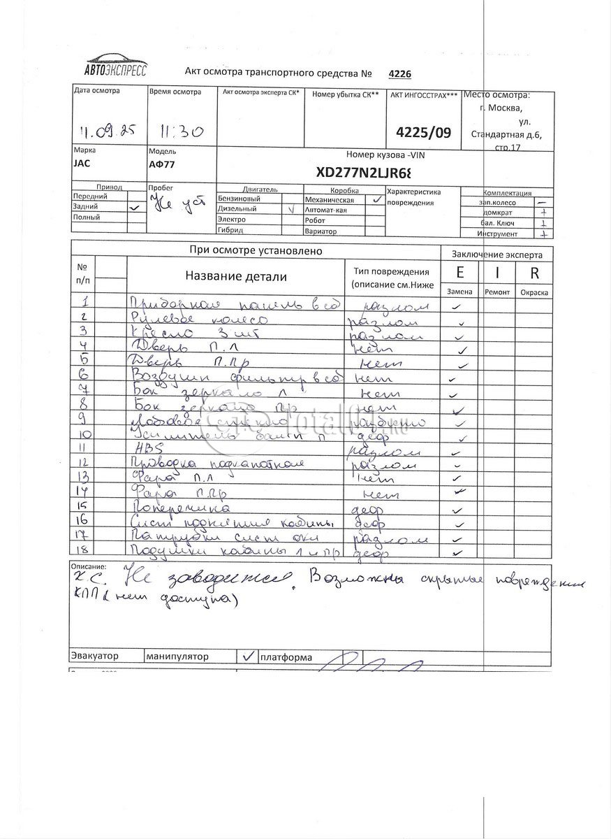 JAC АФ77. ПТС: Не передан (выдана справка). Вин номер предоставляется по запросу,направленному на адрес man4@total01.ru. Стоянка: ул.Стандартная, д.6, стр.17. Счет выставляется автомагазином ООО «Блицкар». (Сумма НДС будет указана в счет фактуре). Авто после ДТП, возможны скрытые повреждения. Гарантии юридической чистоты. Запчасти с авто отдельно не продаются. Цены по телефону не обсуждаются. ДКП и ПТС(если не изъят в ГИБДД) находятся в Москве. Возможности отправки документов нет. Для получения ДКП и ПТС(если не изъят в ГИБДД) потребуется ваше личное присутствие или нотариальная доверенность на вашего представителя. Передний удар; кабина; рама; возможны скрытые повреждения. Ранее автомобиль находился в собственности юр.лица. Количество владельцев: н/у. Пробег н/у. Задняя правая полуось отсутствует.
