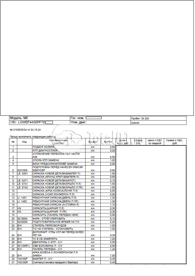 ПТС: Не передан (выдана справка). Вин номер предоставляется по запросу,направленному на адрес man4@total01.ru. Стоянка: ул.Стандартная, д.6, стр.17. Счет выставляется автомагазином ООО «Блицкар». (Сумма НДС будет указана в счет фактуре). Авто после ДТП, возможны скрытые повреждения. Гарантии юридической чистоты. Запчасти с авто отдельно не продаются. Цены по телефону не обсуждаются. ДКП и ПТС(если не изъят в ГИБДД) находятся в Москве. Возможности отправки документов нет. Для получения ДКП и ПТС(если не изъят в ГИБДД) потребуется ваше личное присутствие или нотариальная доверенность на вашего представителя. Передний удар; возможны скрытые повреждения. Ранее автомобиль находился в собственности юр.лица. Количество владельцев: н/у.