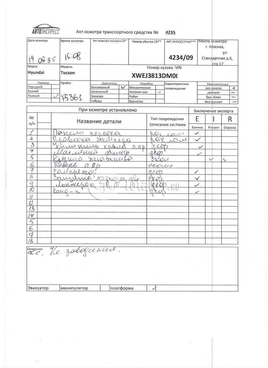 | Капот - заменить | 66400R00 | 5 |