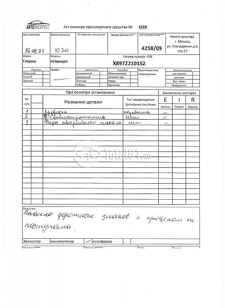 Гаврош. Демпфирующий прицеп прикрытия. ПТС: Не передан (выдана справка). Вин номер предоставляется по запросу,направленному на адрес man4@total01.ru. Стоянка: ул.Стандартная, д.6, стр.17. Счет выставляется автомагазином ООО «Блицкар». (Сумма НДС будет указана в счет фактуре). Авто после ДТП, возможны скрытые повреждения. Гарантии юридической чистоты. Запчасти с авто отдельно не продаются. Цены по телефону не обсуждаются. ДКП и ПТС(если не изъят в ГИБДД) находятся в Москве. Возможности отправки документов нет. Для получения ДКП и ПТС(если не изъят в ГИБДД) потребуется ваше личное присутствие или нотариальная доверенность на вашего представителя. Задний удар; возможны скрытые повреждения. Ранее автомобиль находился в собственности юр.лица. Количество владельцев: н/у. Пробег н/у.