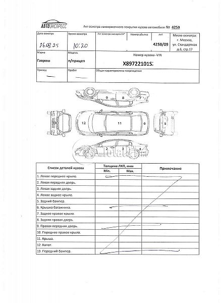 | Состояние ПТС | Отсутствует |