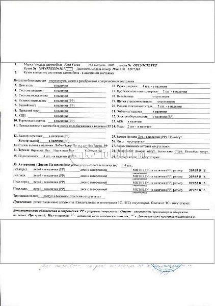| Состояние ПТС | Отсутствует |