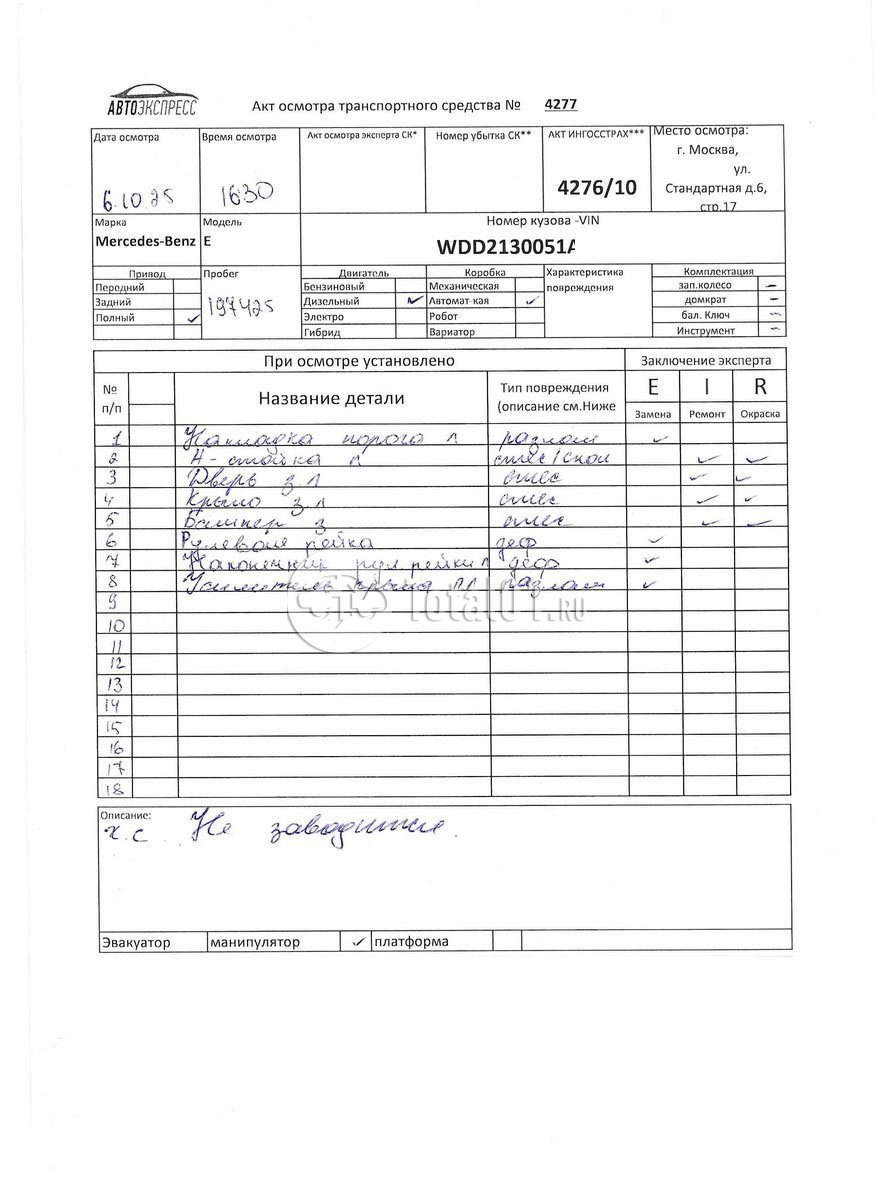 | Аварийный кузов а/м-установка на стапель | 60-1050 01 | 14 |