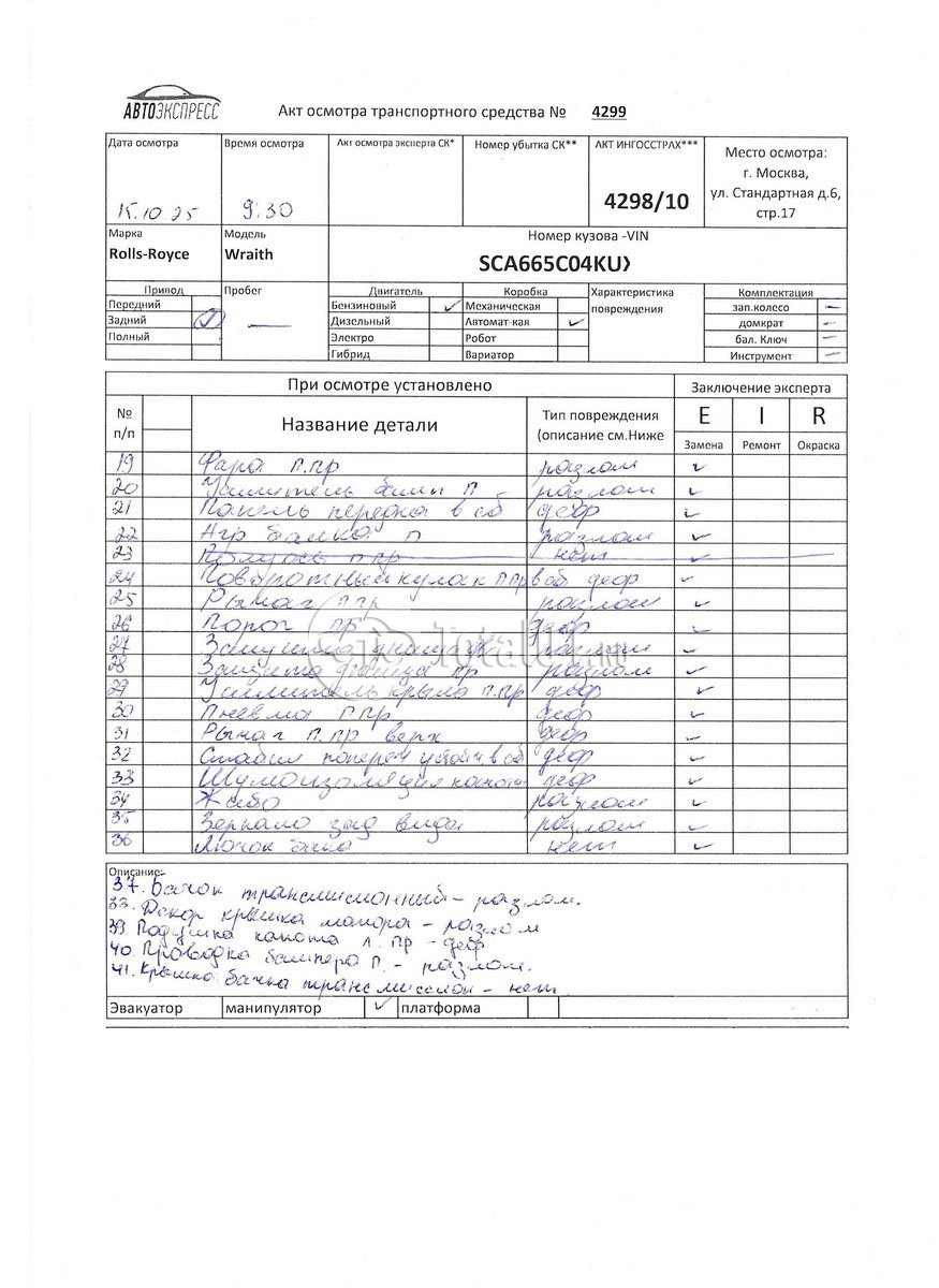ПТС: Не передан (выдана справка). Вин номер предоставляется по запросу,направленному на адрес man4@total01.ru. Стоянка: ул.Стандартная, д.6, стр.17. Счет выставляется автомагазином ООО «Блицкар». (Сумма НДС будет указана в счет фактуре). Авто после ДТП, возможны скрытые повреждения. Гарантии юридической чистоты. Запчасти с авто отдельно не продаются. Цены по телефону не обсуждаются. ДКП и ПТС(если не изъят в ГИБДД) находятся в Москве. Возможности отправки документов нет. Для получения ДКП и ПТС(если не изъят в ГИБДД) потребуется ваше личное присутствие или нотариальная доверенность на вашего представителя. Левый бок; правый передний удар; правый бок; крыша; возможны скрытые повреждения. Ранее автомобиль находился в собственности физ.лица. Количество владельцев: н/у. Пробег н/у.