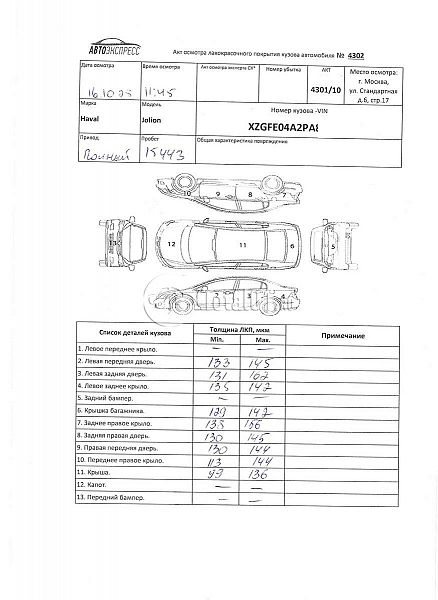 | Состояние ПТС | Отсутствует |