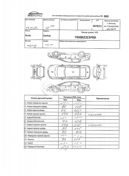 Состояние ПТС | Отсутствует |