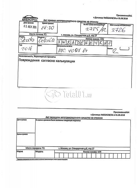 Вин номер предоставляется по запросу,направленному на адрес man4@total01.ru. Стоянка: ул.Стандартная, д.6, стр.17. Счет выставляется автомагазином ООО «Блицкар». (Сумма НДС будет указана в счет фактуре). Авто после ДТП, возможны скрытые повреждения. Гарантии юридической чистоты. Запчасти с авто отдельно не продаются. Цены по телефону не обсуждаются. ДКП и ПТС(если не изъят в ГИБДД) находятся в Москве. Возможности отправки документов нет. Для получения ДКП и ПТС(если не изъят в ГИБДД) потребуется ваше личное присутствие или нотариальная доверенность на вашего представителя. Задний удар; левый бок; крыша; возможны скрытые повреждения. Ранее автомобиль находился в собственности физ.лица.