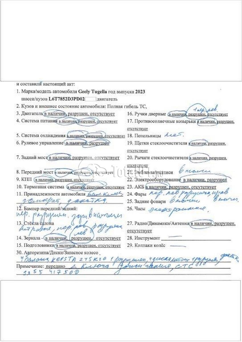 Состояние ПТС | Отсутствует |