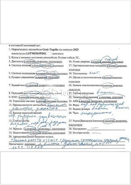 Состояние ПТС | Отсутствует |