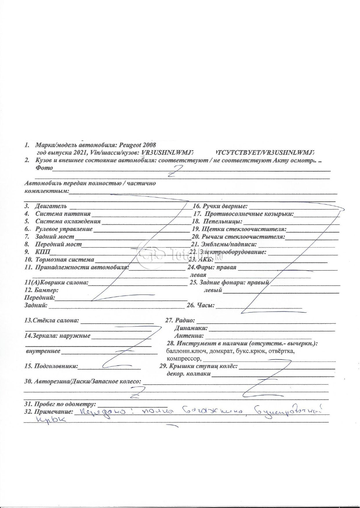 | Обивку крыши заменить (снята | 83.EFZA | 2 |