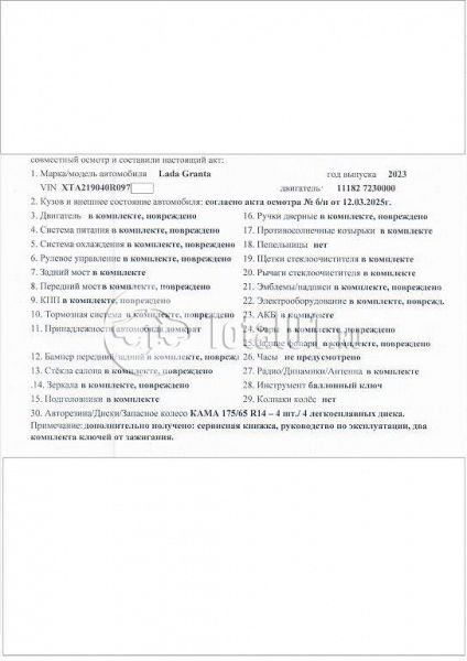 | Состояние ПТС | Отсутствует |