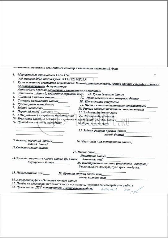 ПТС: Не передан (выдана справка). Вин предоставляется по запросу на почту manager01@total01.ru Стоянка: г. Петрозаводск, Лесной проспект 44Б. Счет выставляется автомагазином ООО «Блицкар». (Сумма НДС будет указана в счет фактуре). Авто после ДТП, возможны скрытые повреждения. Гарантии юридической чистоты. Запчасти с авто отдельно не продаются. Цены по телефону не обсуждаются. ДКП и ПТС(если не изъят в ГИБДД) находятся в Москве. Возможности отправки документов нет. Для получения ДКП и ПТС(если не изъят в ГИБДД) потребуется ваше личное присутствие или нотариальная доверенность на вашего представителя. При получении транспортного средства в региональном филиале при себе иметь оригиналы: ДКП + ПТС (если не изъят в ГИБДД) + Нотариальная доверенность (если автомобиль получает представитель, или на бланке организации с печатью при оплате юр. лицом). Ранее автомобиль находился в собственности юр. лица. Пробег н/у. Кол-во владельцев: н/у. Полная деформация кузова; возможны скрытые повреждения.