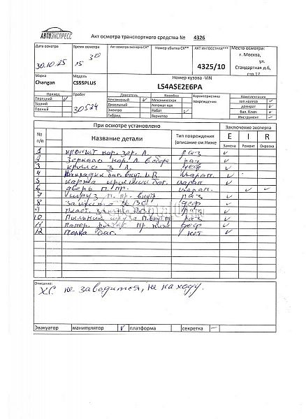 | Состояние ПТС | Отсутствует |