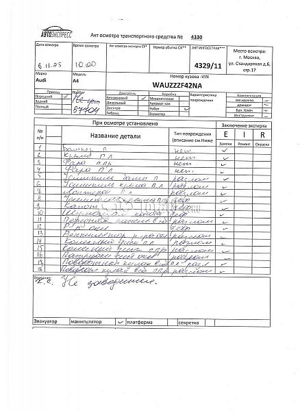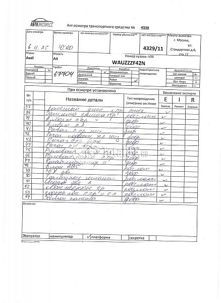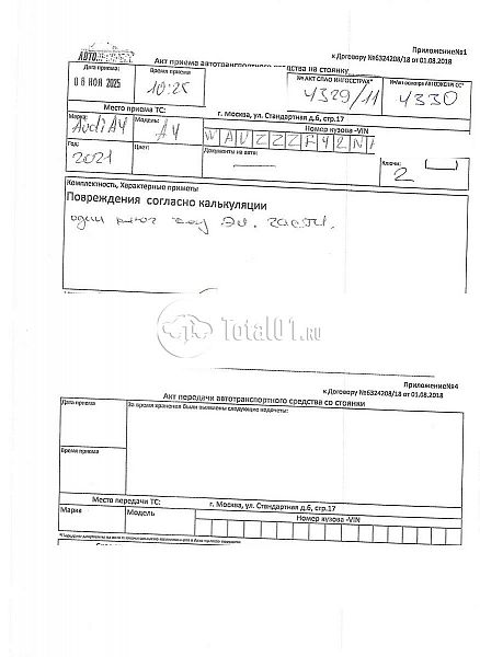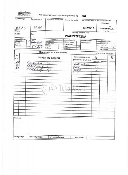 ПТС: Не передан (выдана справка). Вин номер предоставляется по запросу, направленному на адрес man4@total01.ru. Стоянка: ул.Стандартная, д.6, стр.17. Счет выставляется автомагазином ООО «Блицкар». (Сумма НДС будет указана в счет фактуре). Авто после ДТП, возможны скрытые повреждения. Гарантии юридической чистоты. Запчасти с авто отдельно не продаются. Цены по телефону не обсуждаются. ДКП и ПТС(если не изъят в ГИБДД) находятся в Москве. Возможности отправки документов нет. Для получения ДКП и ПТС(если не изъят в ГИБДД) потребуется ваше личное присутствие или нотариальная доверенность на вашего представителя. Правый передний удар; левый передний удар; возможны скрытые повреждения. Ранее автомобиль находился в собственности физ.лица. Количество владельцев: н/у.