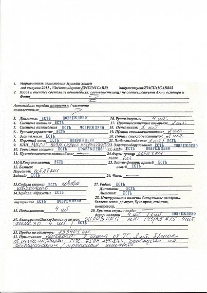 | Состояние ПТС | Отсутствует |