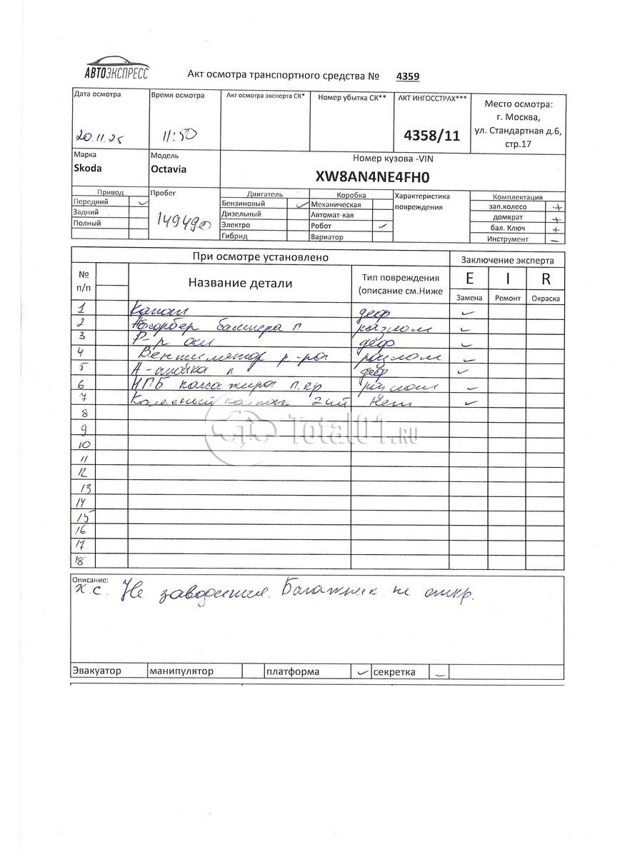 | А-стойка нар л.отремонтировать | | 20 |