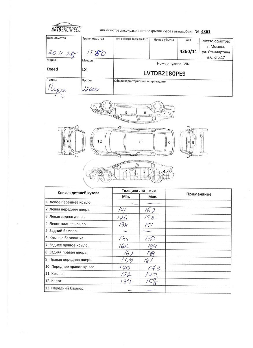 | Бампер п заменить | Б/Н | 7 |