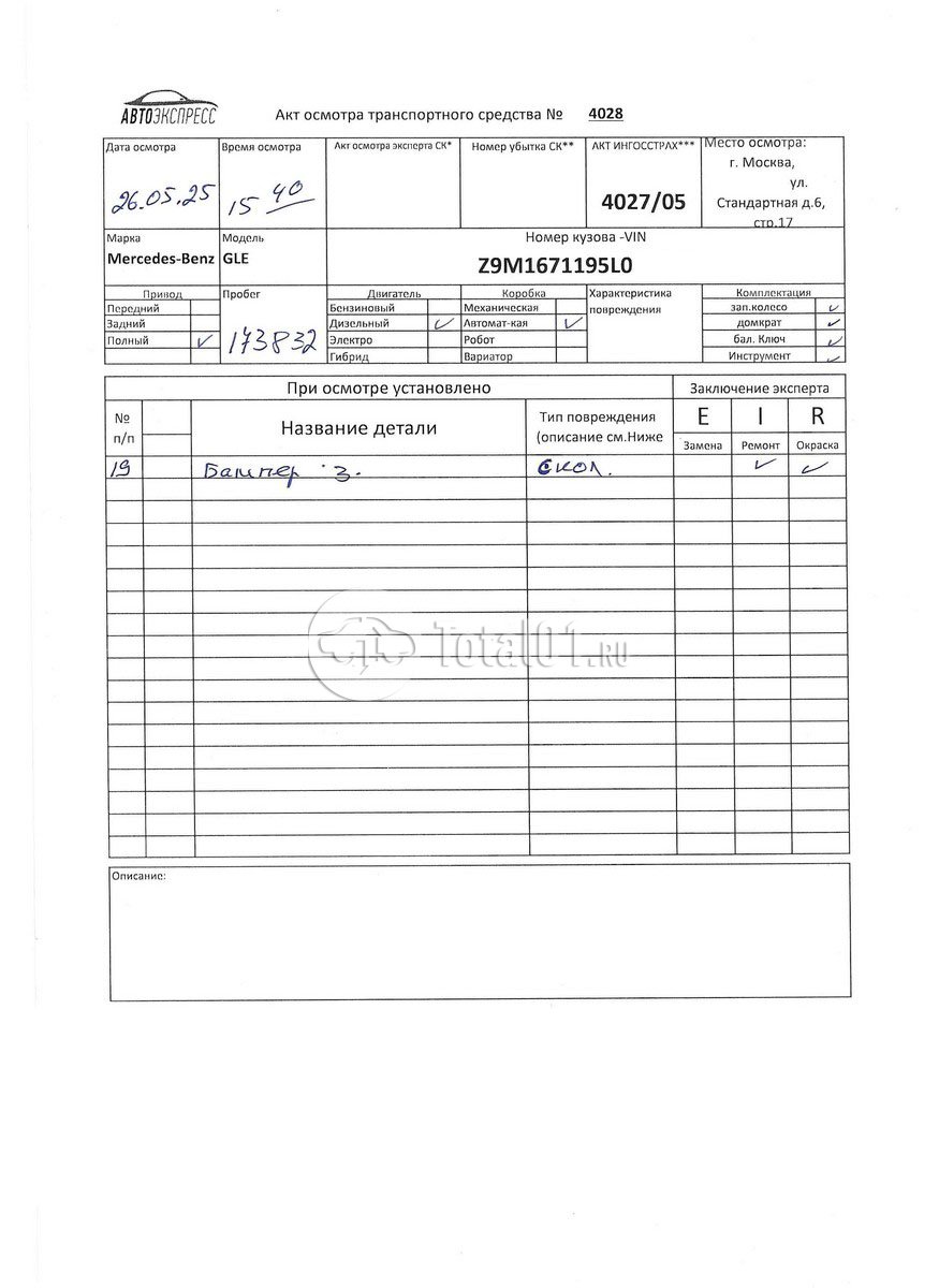 Mercedes-Benz GLE 300d 4Matic. ПТС: Не передан (выдана справка). Вин номер предоставляется по запросу,направленному на адрес man4@total01.ru. Стоянка: ул.Стандартная, д.6, стр.17. Счет выставляется автомагазином ООО «Блицкар». (Сумма НДС будет указана в счет фактуре). Авто после ДТП, возможны скрытые повреждения. Гарантии юридической чистоты. Запчасти с авто отдельно не продаются. Цены по телефону не обсуждаются. ДКП и ПТС(если не изъят в ГИБДД) находятся в Москве. Возможности отправки документов нет. Для получения ДКП и ПТС(если не изъят в ГИБДД) потребуется ваше личное присутствие или нотариальная доверенность на вашего представителя. Передний удар; возможны скрытые повреждения. Ранее автомобиль находился в собственности физ.лица. Количество владельцев: н/у.