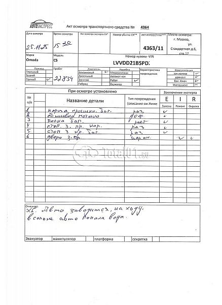 | Состояние ПТС | Отсутствует |