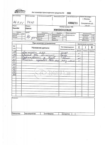 Вин номер предоставляется по запросу, направленному на адрес man4@total01.ru. Стоянка: ул. Стандартная, д.6, стр.17. Счет выставляется автомагазином ООО «Блицкар». (Сумма НДС будет указана в счет фактуре). Авто после ДТП, возможны скрытые повреждения. Гарантии юридической чистоты. Запчасти с авто отдельно не продаются. Цены по телефону не обсуждаются. ДКП и ПТС(если не изъят в ГИБДД) находятся в Москве. Возможности отправки документов нет. Для получения ДКП и ПТС(если не изъят в ГИБДД) потребуется ваше личное присутствие или нотариальная доверенность на вашего представителя. Ранее автомобиль находился в собственности юр.лица. ПТС: Не передан (выдана справка). Количество владельцев: н/у. Левый передний удар; задний удар; возможны скрытые повреждения. Пробег н/у.