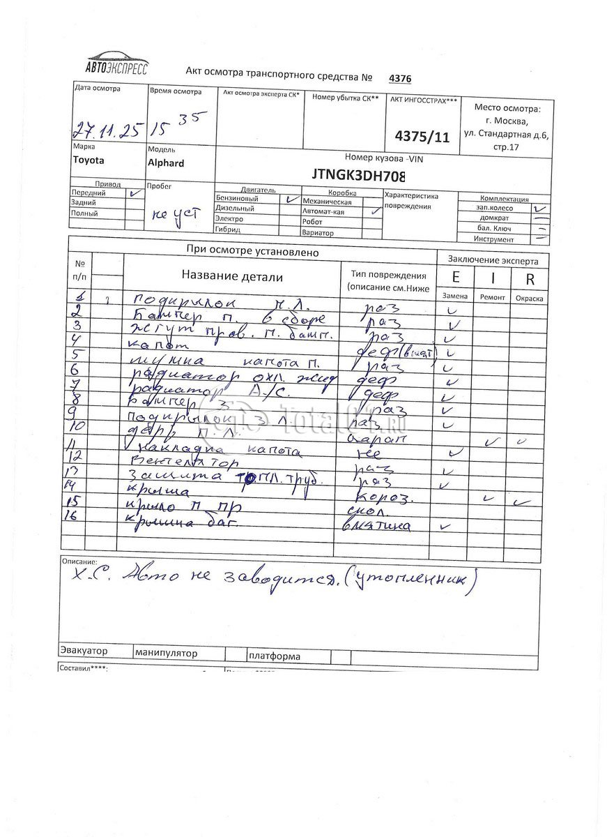 | Решетка радиатора - заменить | B030 | 6 |