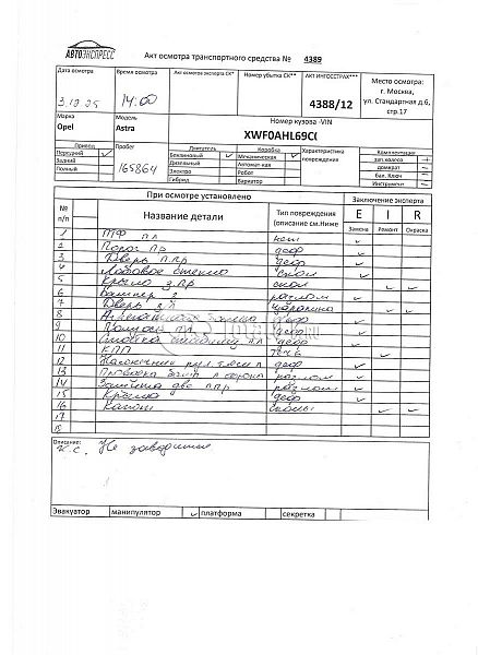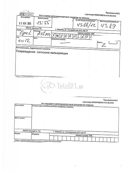 ПТС: Не передан (выдана справка). Вин номер предоставляется по запросу,направленному на адрес man4@total01.ru. Стоянка: ул.Стандартная, д.6, стр.17. Счет выставляется автомагазином ООО «Блицкар». (Сумма НДС будет указана в счет фактуре). Авто после ДТП, возможны скрытые повреждения. Гарантии юридической чистоты. Запчасти с авто отдельно не продаются. Цены по телефону не обсуждаются. ДКП и ПТС(если не изъят в ГИБДД) находятся в Москве. Возможности отправки документов нет. Для получения ДКП и ПТС(если не изъят в ГИБДД) потребуется ваше личное присутствие или нотариальная доверенность на вашего представителя. Левый передний удар; нижний удар; возможны скрытые повреждения. Ранее автомобиль находился в собственности физ.лица. Количество владельцев: н/у.