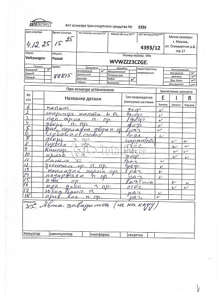 ПТС: Не передан (выдана справка). Вин номер предоставляется по запросу,направленному на адрес man4@total01.ru. Стоянка: ул.Стандартная, д.6, стр.17. Счет выставляется автомагазином ООО «Блицкар». (Сумма НДС будет указана в счет фактуре). Авто после ДТП, возможны скрытые повреждения. Гарантии юридической чистоты. Запчасти с авто отдельно не продаются. Цены по телефону не обсуждаются. ДКП и ПТС(если не изъят в ГИБДД) находятся в Москве. Возможности отправки документов нет. Для получения ДКП и ПТС(если не изъят в ГИБДД) потребуется ваше личное присутствие или нотариальная доверенность на вашего представителя. Правый передний удар; левый бок; возможны скрытые повреждения. Ранее автомобиль находился в собственности физ.лица. Количество владельцев: н/у.