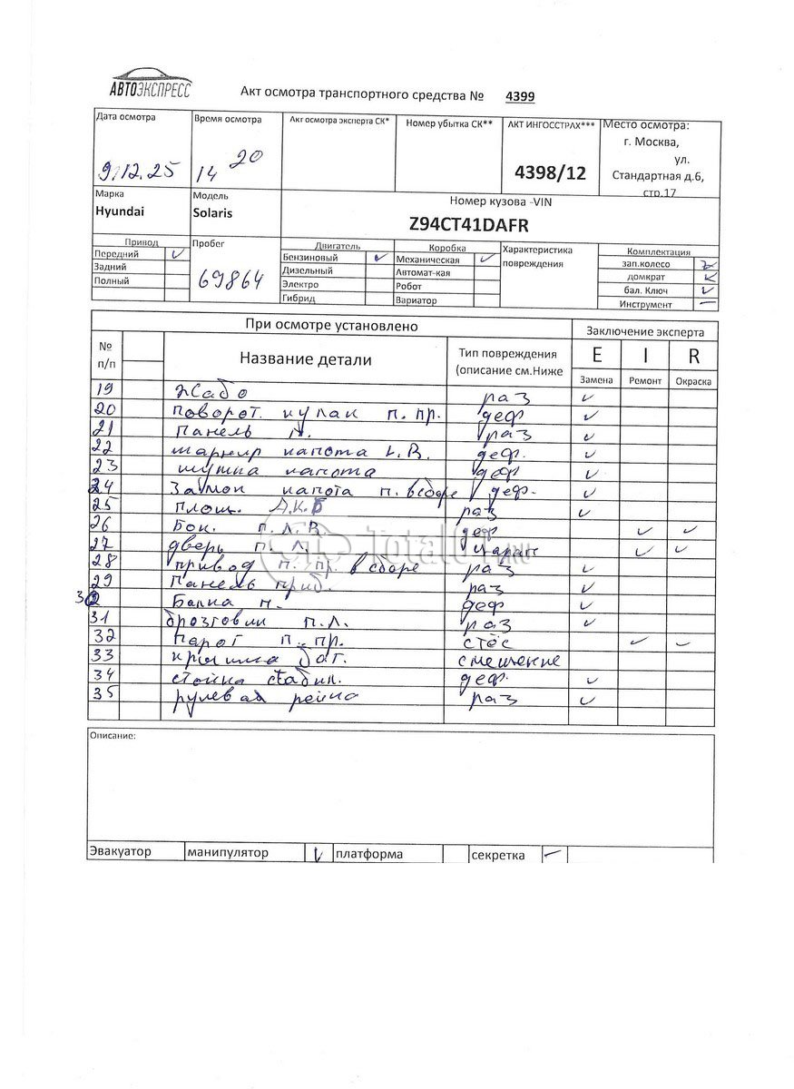 | Арка колесн п пр.отремонтировать | 1152 | 35 |