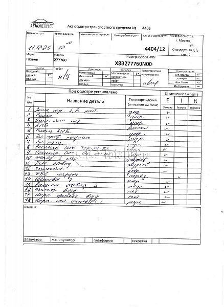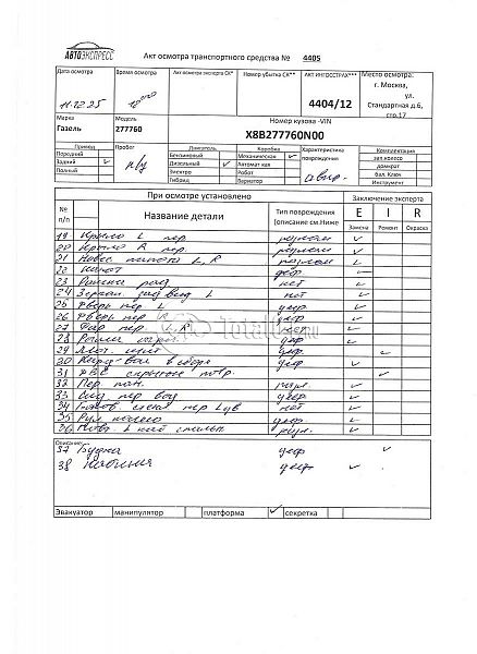 Газель 277760. ПТС: Не передан (выдана справка). Вин номер предоставляется по запросу,направленному на адрес man4@total01.ru. Стоянка: ул.Стандартная, д.6, стр.17. Счет выставляется автомагазином ООО «Блицкар». (Сумма НДС будет указана в счет фактуре). Авто после ДТП, возможны скрытые повреждения. Гарантии юридической чистоты. Запчасти с авто отдельно не продаются. Цены по телефону не обсуждаются. ДКП и ПТС(если не изъят в ГИБДД) находятся в Москве. Возможности отправки документов нет. Для получения ДКП и ПТС(если не изъят в ГИБДД) потребуется ваше личное присутствие или нотариальная доверенность на вашего представителя. Передний удар; правый бок4 левый бок; возможны скрытые повреждения. Ранее автомобиль находился в собственности юр.лица. Количество владельцев: н/у. Пробег н/у.
