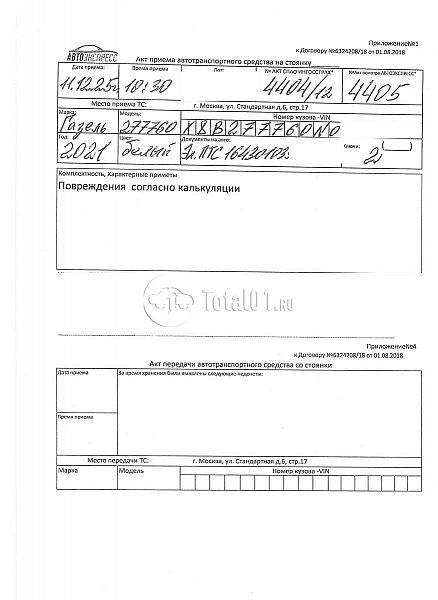 | Состояние ПТС | Отсутствует |