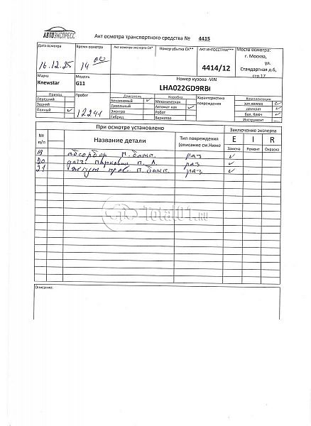 ПТС: Не передан (выдана справка). Вин номер предоставляется по запросу,направленному на адрес man4@total01.ru. Стоянка: ул.Стандартная, д.6, стр.17. Счет выставляется автомагазином ООО «Блицкар». (Сумма НДС будет указана в счет фактуре). Авто после ДТП, возможны скрытые повреждения. Гарантии юридической чистоты. Запчасти с авто отдельно не продаются. Цены по телефону не обсуждаются. ДКП и ПТС(если не изъят в ГИБДД) находятся в Москве. Возможности отправки документов нет. Для получения ДКП и ПТС(если не изъят в ГИБДД) потребуется ваше личное присутствие или нотариальная доверенность на вашего представителя. Левый передний удар; левый бок; возможны скрытые повреждения. Ранее автомобиль находился в собственности физ.лица. Количество владельцев: н/у.