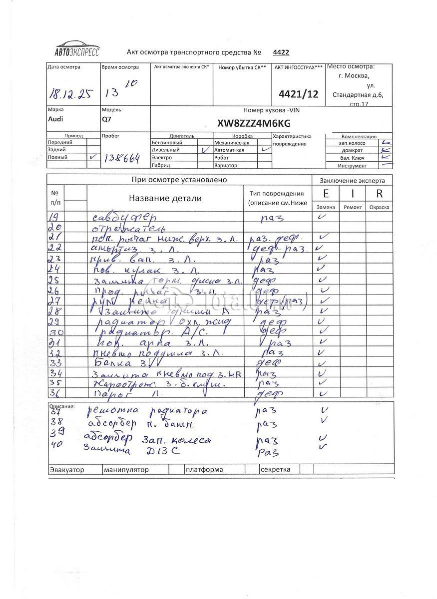 | Крыло п л - заменить | 50 55 55 50 | 2 |