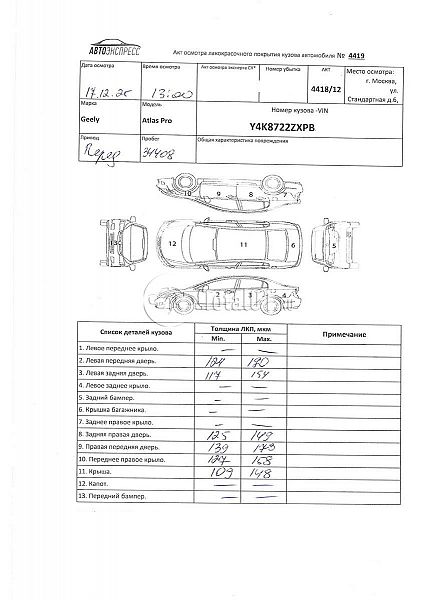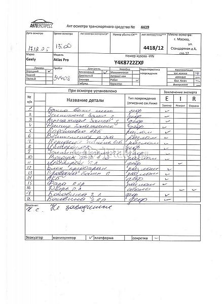 | Состояние ПТС | Отсутствует |