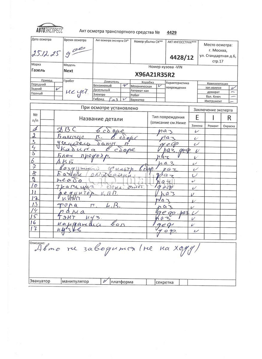 Сжиженный пропан-бутан, бензин. ПТС: Не передан (выдана справка). Вин номер предоставляется по запросу,направленному на адрес man4@total01.ru. Стоянка: ул.Стандартная, д.6, стр.17. Счет выставляется автомагазином ООО «Блицкар». (Сумма НДС будет указана в счет фактуре). Авто после ДТП, возможны скрытые повреждения. Гарантии юридической чистоты. Запчасти с авто отдельно не продаются. Цены по телефону не обсуждаются. ДКП и ПТС(если не изъят в ГИБДД) находятся в Москве. Возможности отправки документов нет. Для получения ДКП и ПТС(если не изъят в ГИБДД) потребуется ваше личное присутствие или нотариальная доверенность на вашего представителя. Передний удар; кабина; рама; возможны скрытые повреждения. Ранее автомобиль находился в собственности юр.лица. Количество владельцев: н/у. Пробег н/у.