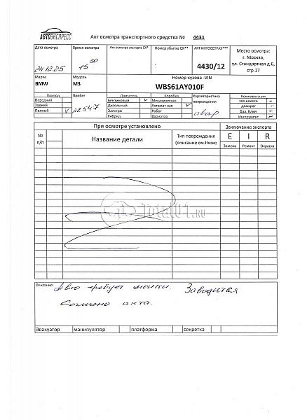BMW M3 CS. ПТС: Не передан (выдана справка). Вин номер предоставляется по запросу,направленному на адрес man4@total01.ru. Стоянка: ул.Стандартная, д.6, стр.17. Счет выставляется автомагазином ООО «Блицкар». (Сумма НДС будет указана в счет фактуре). Авто после ДТП, возможны скрытые повреждения. Гарантии юридической чистоты. Запчасти с авто отдельно не продаются. Цены по телефону не обсуждаются. ДКП и ПТС(если не изъят в ГИБДД) находятся в Москве. Возможности отправки документов нет. Для получения ДКП и ПТС(если не изъят в ГИБДД) потребуется ваше личное присутствие или нотариальная доверенность на вашего представителя. Правый передний удар; правый задний удар; возможны скрытые повреждения. Ранее автомобиль находился в собственности физ.лица. Количество владельцев: н/у.