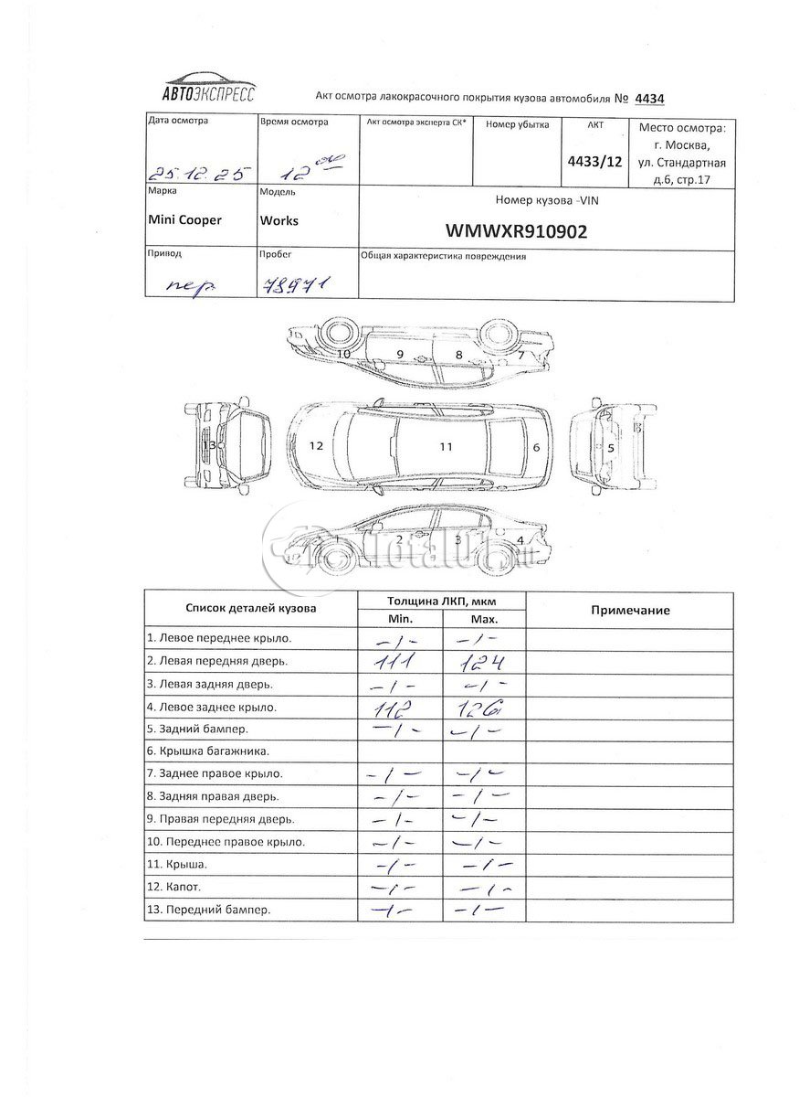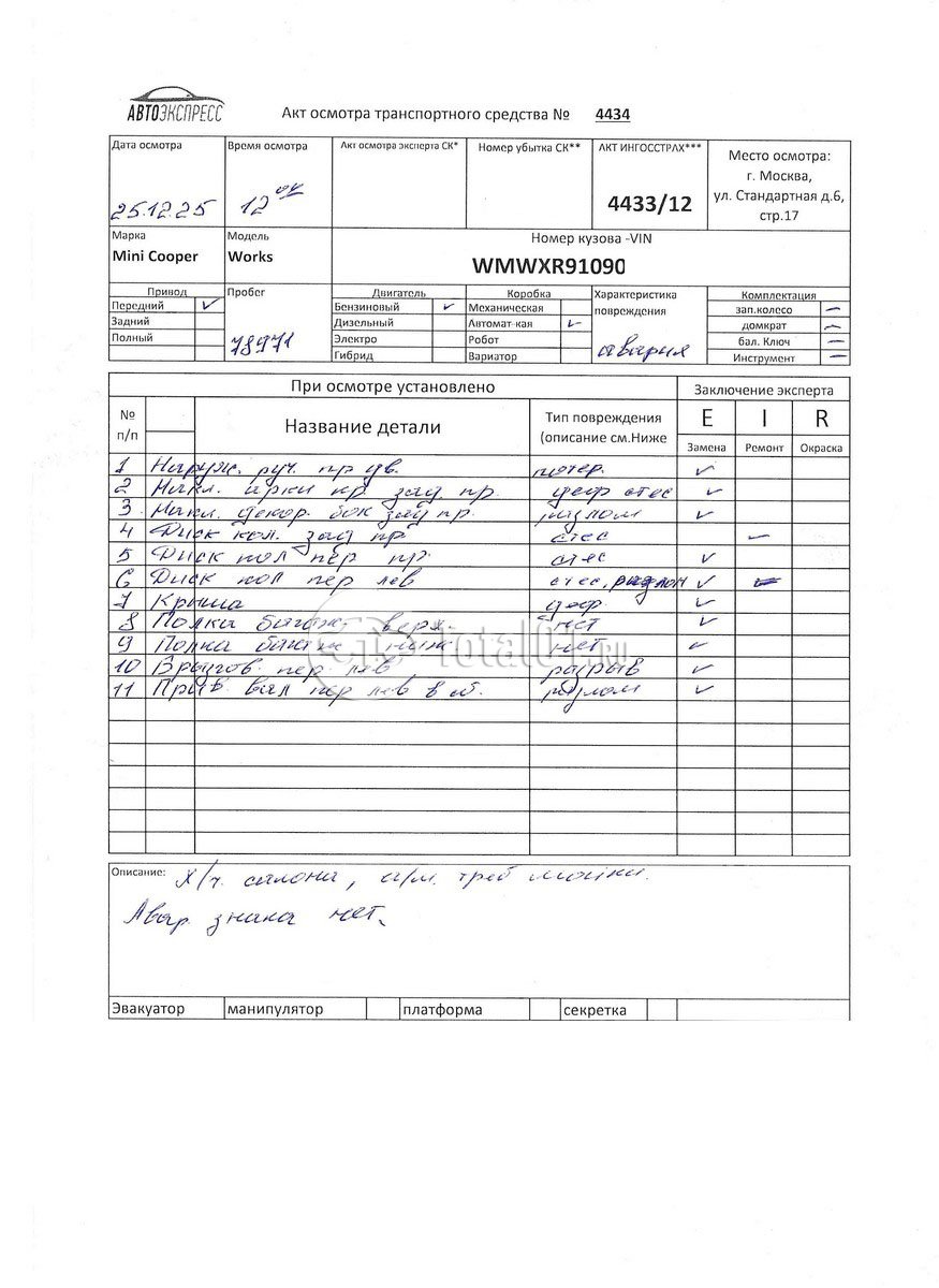 | Капот - заменить | 41 61 501 | 9 |