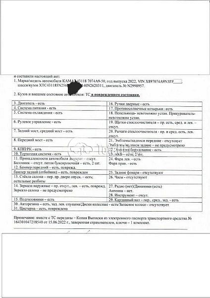 ПТС: Не передан (выдана справка). Вин предоставляется по запросу на почту managers_total01@total01.ru. Стоянка: г.Усть-Кут, ул. 2-я Таежная, 38. Счет выставляется автомагазином ООО «Блицкар». (Сумма НДС будет указана всчет фактуре). Авто после ДТП, возможны скрытые повреждения. Гарантии юридической чистоты. Запчасти с авто отдельно не продаются. Цены по телефону не обсуждаются. ДКП и ПТС(если не изъят в ГИБДД) находятся в Москве. Возможности отправки документов нет. Для получения ДКП и ПТС(если не изъят в ГИБДД) потребуется ваше личное присутствие или нотариальная доверенность на вашего представителя. При получении транспортного средства в региональном филиале при себе иметь оригиналы: ДКП + ПТС (если не изъят в ГИБДД) + Нотариальная доверенность (если автомобиль получает представитель, или на бланке организации с печатью при оплате юр. лицом). Ранее автомобиль находился в собственности юр.лица. Количество владельцев: н/у. Пробег н/у. Правый бок; левый бок; кабина; цистерна; возможны скрытые повреждения.