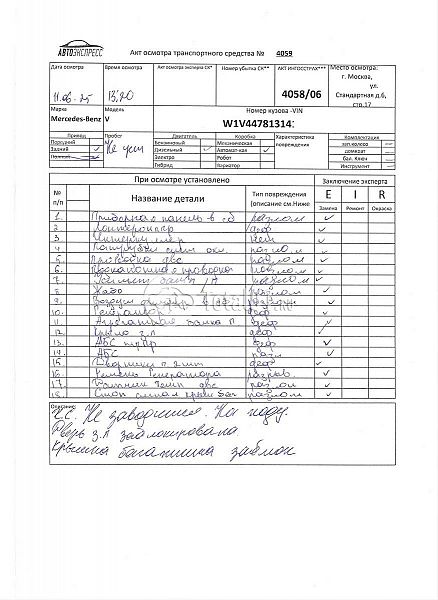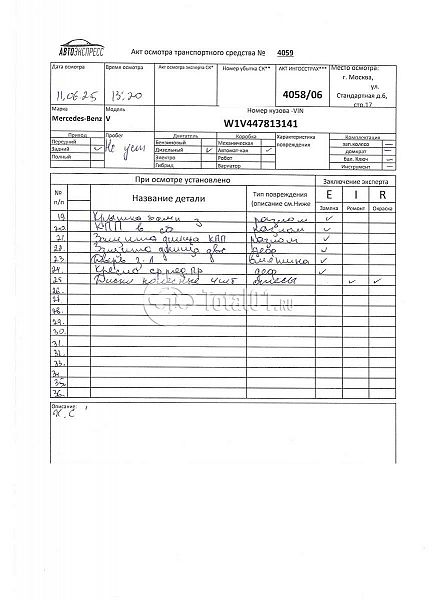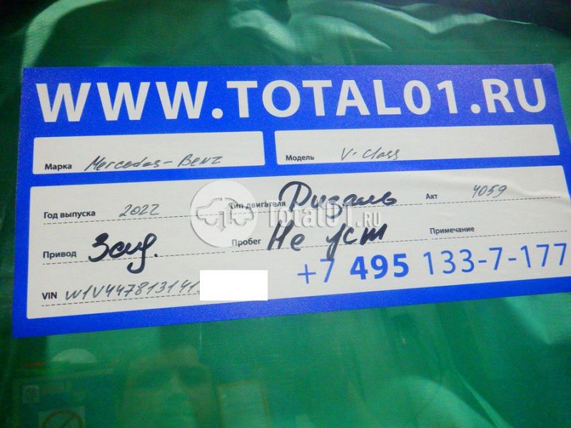 Mercedes-Benz V 300D. ПТС: Не передан (выдана справка). Вин номер предоставляется по запросу,направленному на адрес man4@total01.ru. Стоянка: ул.Стандартная, д.6, стр.17. Счет выставляется автомагазином ООО «Блицкар». (Сумма НДС будет указана в счет фактуре). Авто после ДТП, возможны скрытые повреждения. Гарантии юридической чистоты. Запчасти с авто отдельно не продаются. Цены по телефону не обсуждаются. ДКП и ПТС(если не изъят в ГИБДД) находятся в Москве. Возможности отправки документов нет. Для получения ДКП и ПТС(если не изъят в ГИБДД) потребуется ваше личное присутствие или нотариальная доверенность на вашего представителя. Передний удар; возможны скрытые повреждения. Ранее автомобиль находился в собственности физ.лица. Количество владельцев: н/у. Пробег н/у.