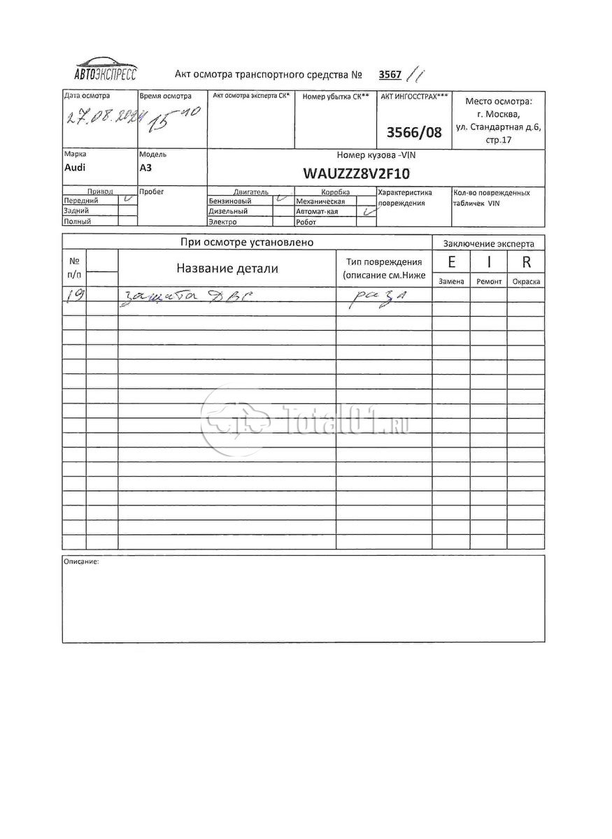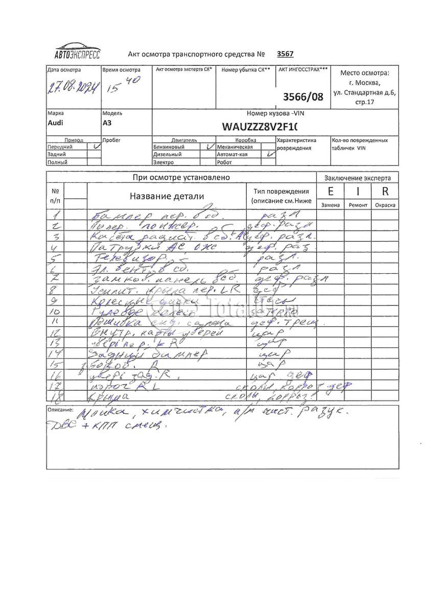 Вин номер предоставляется по запросу,направленному на адрес man4@total01.ru. Стоянка: ул.Стандартная, д.6, стр.17. Счет выставляется автомагазином ООО «Блицкар». (Сумма НДС будет указана в счет фактуре). Авто после ДТП, возможны скрытые повреждения. Гарантии юридической чистоты. Запчасти с авто отдельно не продаются. Цены по телефону не обсуждаются. ДКП и ПТС(если не изъят в ГИБДД) находятся в Москве. Возможности отправки документов нет. Для получения ДКП и ПТС(если не изъят в ГИБДД) потребуется ваше личное присутствие или нотариальная доверенность на вашего представителя. Передний удар; возможны скрытые повреждения. Ранее автомобиль находился в собственности физ.лица.