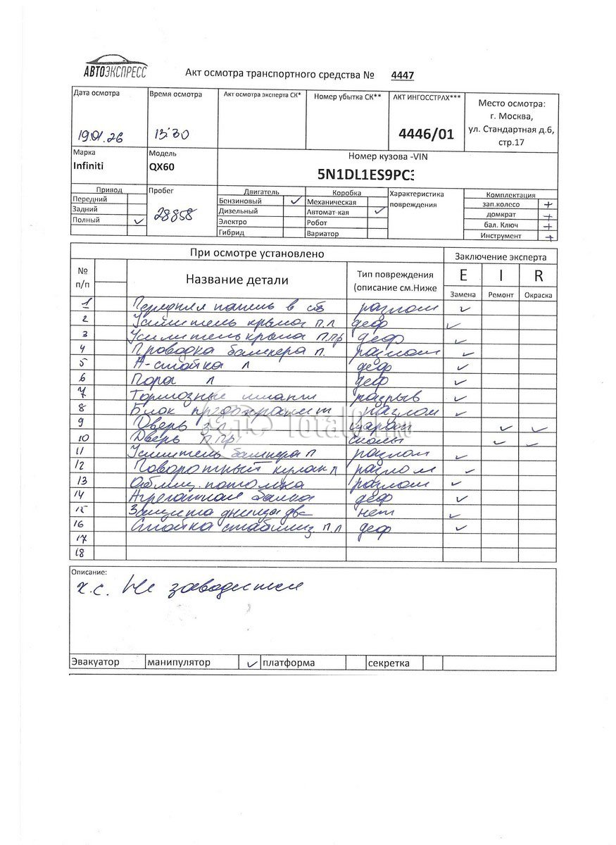 | А-стойка - заменить | | 24 |