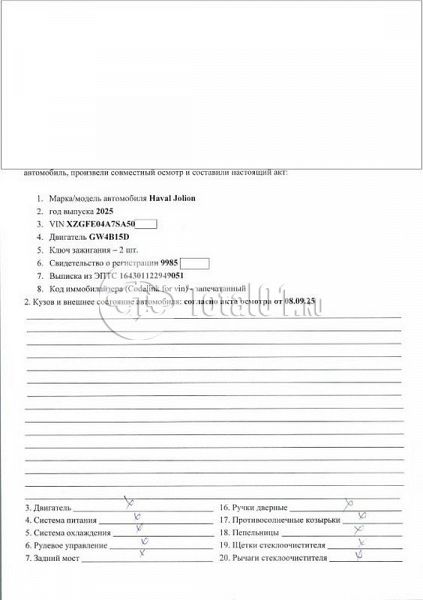 | Состояние ПТС | Отсутствует |