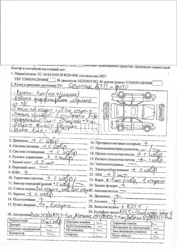 ПТС: Не передан (выдана справка). Вин предоставляется по запросу на почту manager01@total01.ru Стоянка: г. Нижний Новгород, Московское шоссе, 141А. Счет выставляется автомагазином ООО «Блицкар». (Сумма НДС будет указана в счет фактуре). Авто после ДТП, возможны скрытые повреждения. Гарантии юридической чистоты. Запчасти с авто отдельно не продаются. Цены по телефону не обсуждаются. ДКП и ПТС(если не изъят в ГИБДД) находятся в Москве. Возможности отправки документов нет. Для получения ДКП и ПТС(если не изъят в ГИБДД) потребуется ваше личное присутствие или нотариальная доверенность на вашего представителя. При получении транспортного средства в региональном филиале при себе иметь оригиналы: ДКП + ПТС (если не изъят в ГИБДД) + Нотариальная доверенность (если автомобиль получает представитель, или на бланке организации с печатью при оплате юр. лицом). Ранее автомобиль находился в собственности юр. лица. Пробег н/у. Кол-во владельцев: н/у. Левый передний удар; кабина; возможны скрытые повреждения.