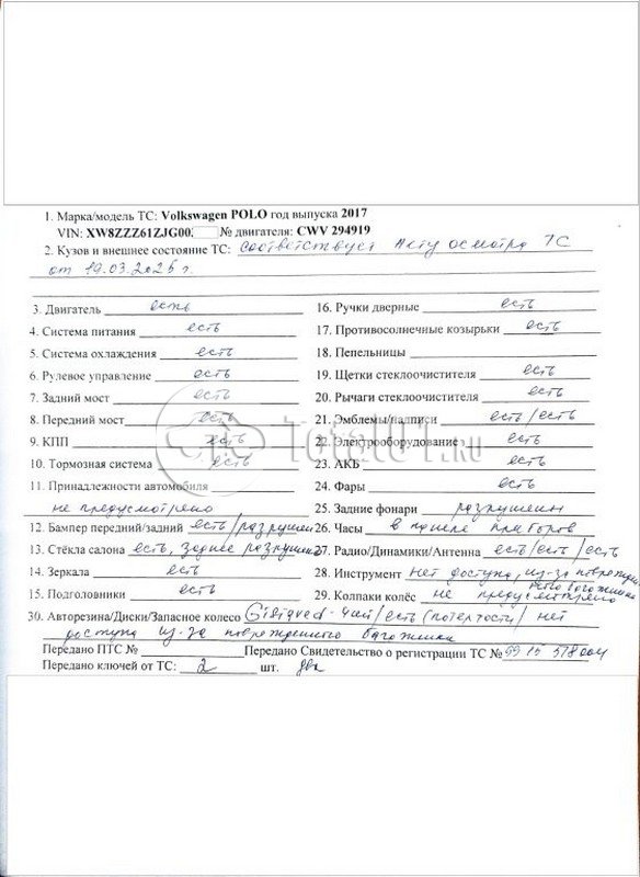 | Состояние ПТС | Отсутствует |