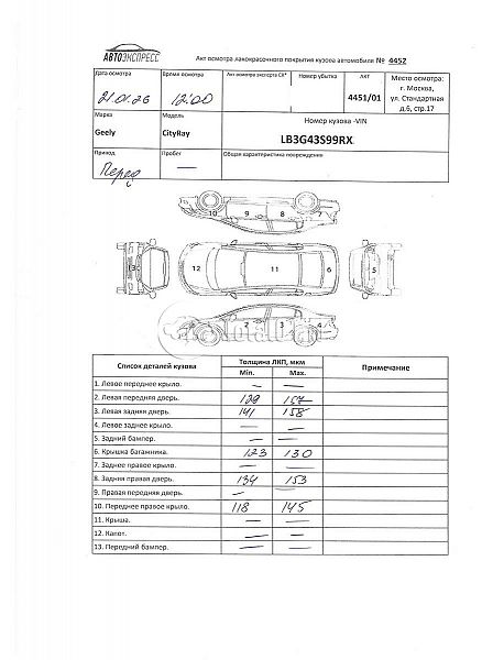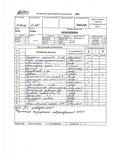 | Состояние ПТС | Отсутствует |